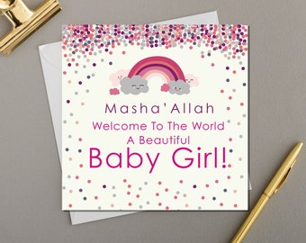 Personalised Muslim Islamic New Baby Girl Card | eBay