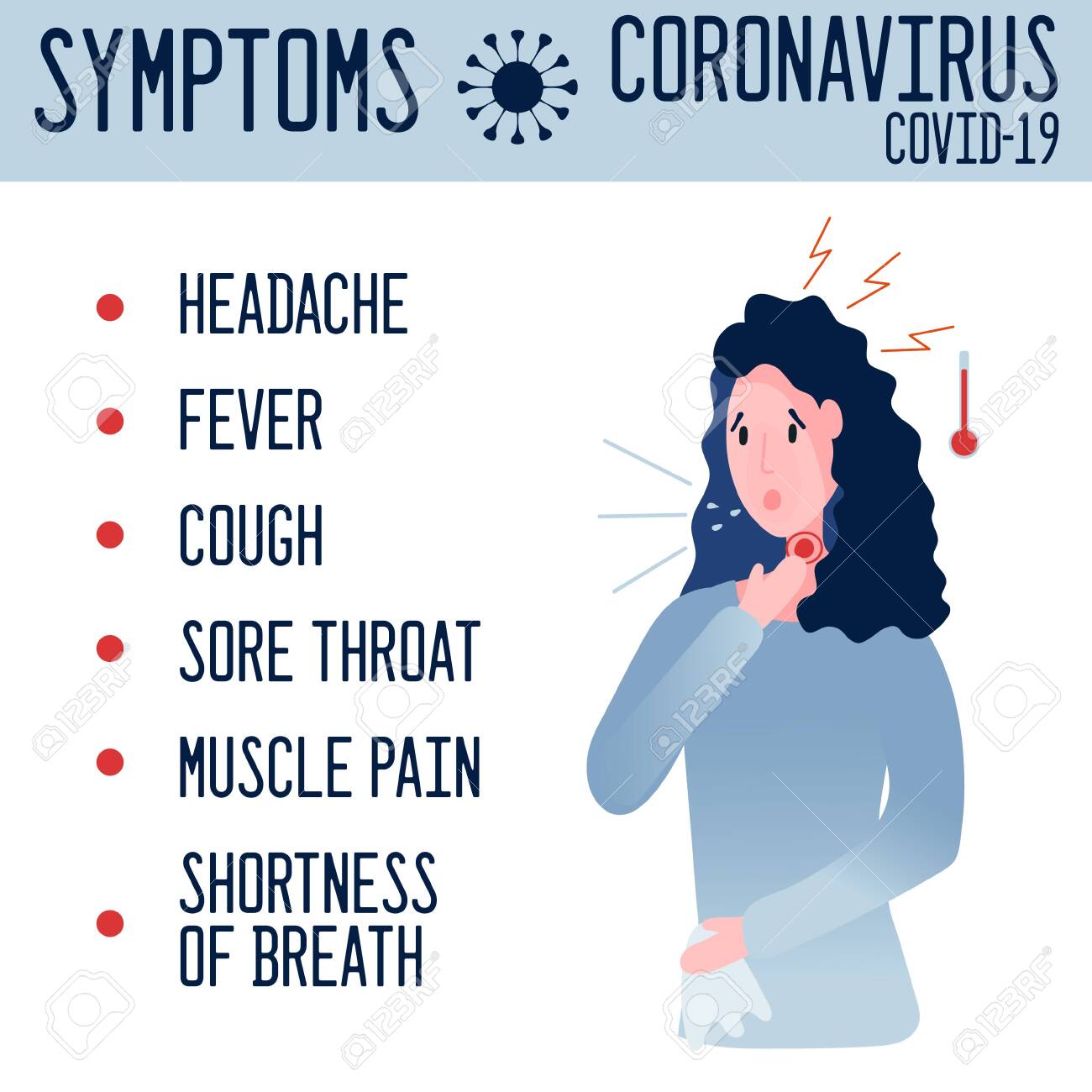 Vector Alert Banner With Symptoms Of Coronavirus. Woman Suffering.. Royalty Free Cliparts, Vectors, And Stock Illustration. Image 148643909.